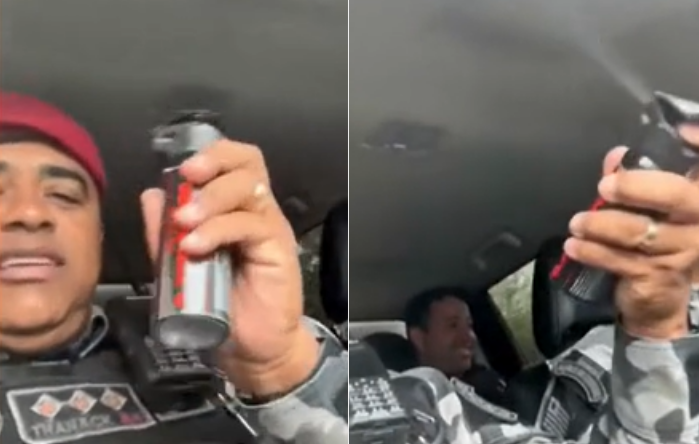 Nas imagens, o capitão aparece segurando um spray de pimenta e anuncia que todos iriam “cheirar um gás” para começar a segunda-feira com mais disposição. Em seguida, ele aciona o dispositivo dentro do veículo. A princípio, os policiais reagem com risadas, mas logo o efeito do agente químico se faz sentir, provocando tosse e desconforto, inclusive no próprio subcomandante e em um militar que estava no banco traseiro.