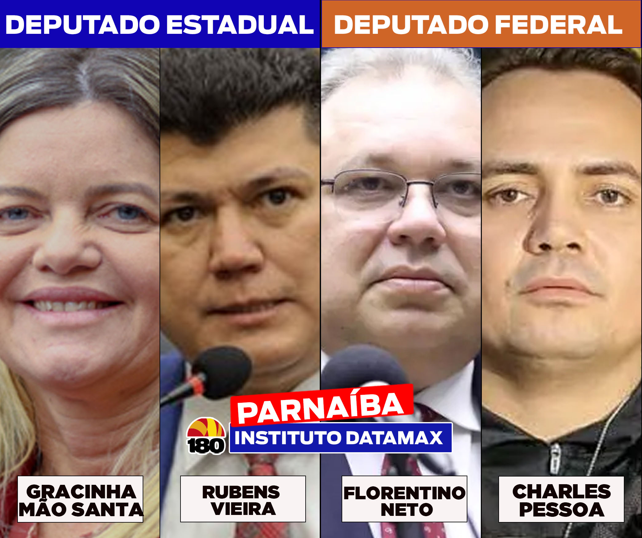 No cenário para deputado estadual, a liderança é da deputada Gracinha Mão Santa, que aparece com 39,24% dos votos válidos na modalidade espontânea. Em segundo lugar surge Rubens Vieira, com 10,13%. Já na disputa para deputado federal, o levantamento aponta Florentino Neto na liderança, com 38% dos votos válidos, seguido por Gracinha Mão Santa (pré-candidata a reeleição na Alepi), com 8%, e Delegado Charles Pessoa, que aparece em terceiro lugar com 6%.