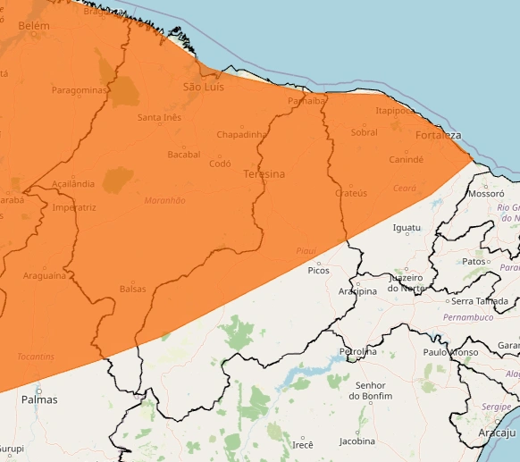 O Instituto Nacional de Meteorologia (Inmet) acionou o alerta laranja para chuvas fortes em diversas cidades do Piauí nesta segunda-feira (20/04). O aviso vale até as 23h59 e inclui a capital Teresina.
